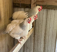 Speckled Sussex 1 rooster, 2 hens.